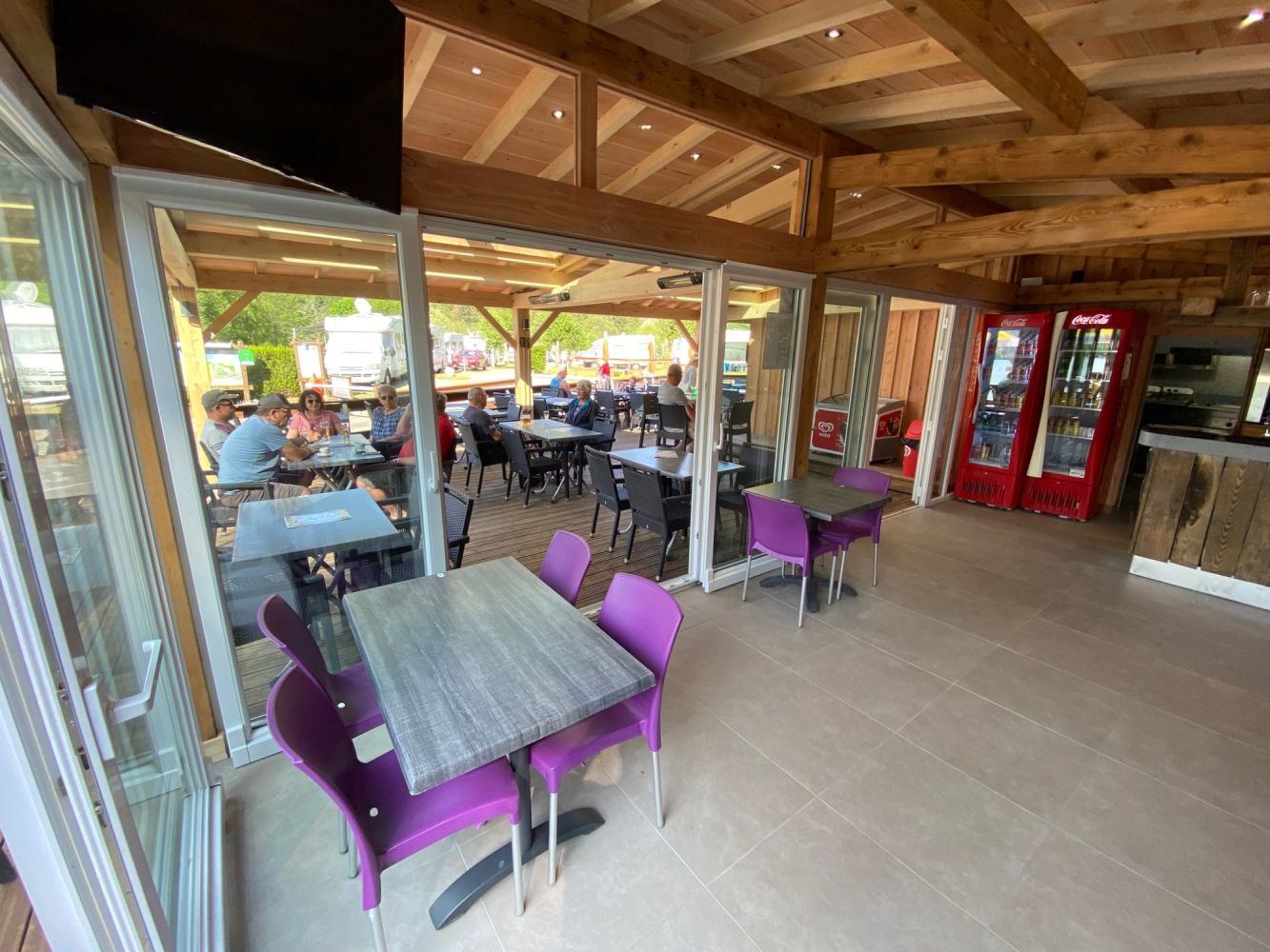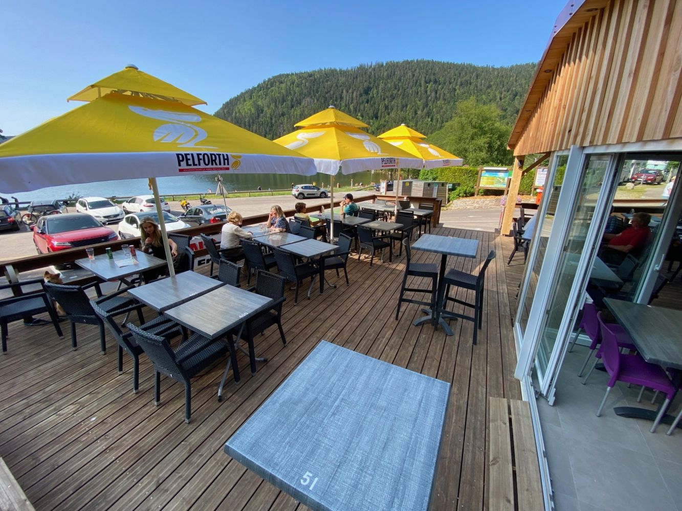 Le camping vous convie à un repas dans son snack/bar (sur place ou à emporter) agréable et confortable avec vaste terrasse et sa vue sur le lac de Longemer ou sa salle soigneusement aménagée et équipée.